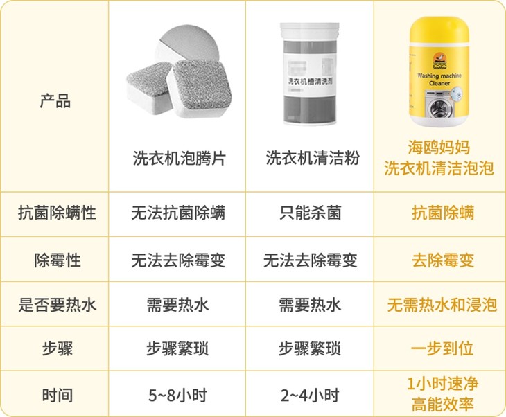 但小黄瓶无需浸泡,一接触水马上开始发力,几乎能清洁洗衣机的所有区域。