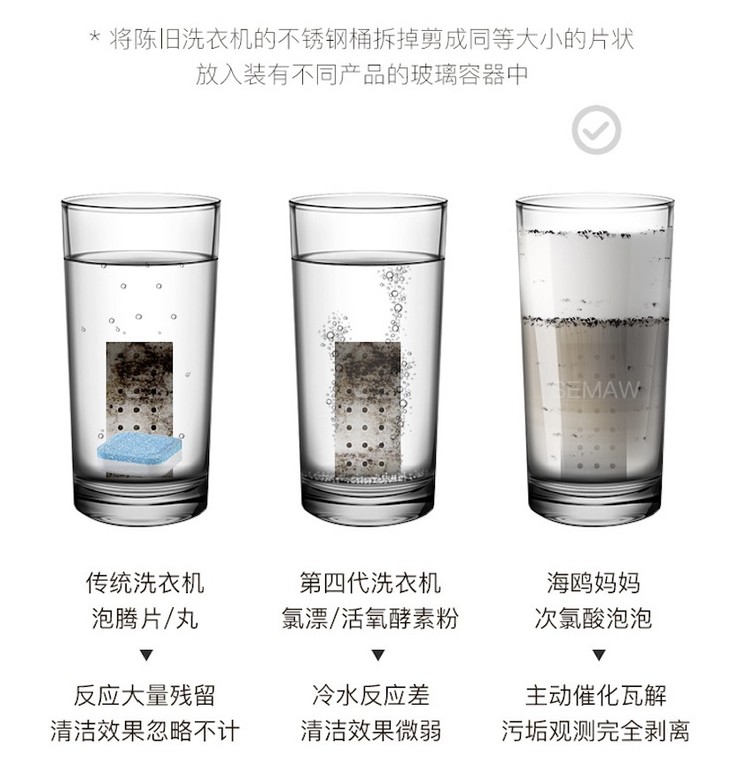 传统洗衣机清洁剂没有自主活化成分,所以即使用了热水,也很难释放效果。另外一部分冷水可能连充分溶解都困难,更别真实提性能了。