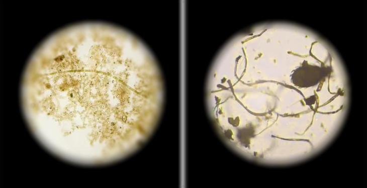从左到右依次为观测到的病菌 🦠 和 螨虫 🐛