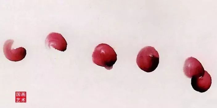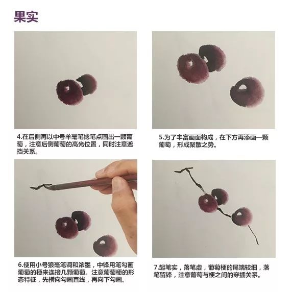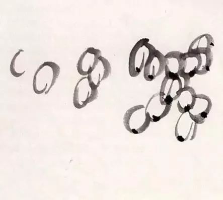 1.勾勒葡萄可取中号白云笔或兼毫笔,可用两笔完成一料,也可一笔圈成一粒。