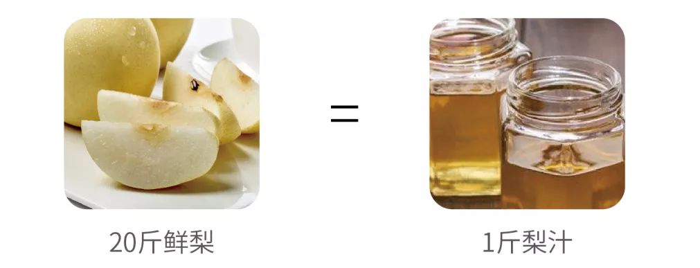 主要原料梨子,来自有2500年历史的赵县,挑选当季新鲜的雪花梨,果肉洁白如玉、似霜如雪,有淡淡的冰糖味。