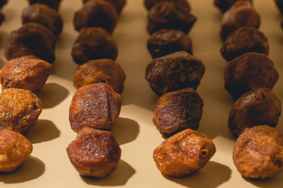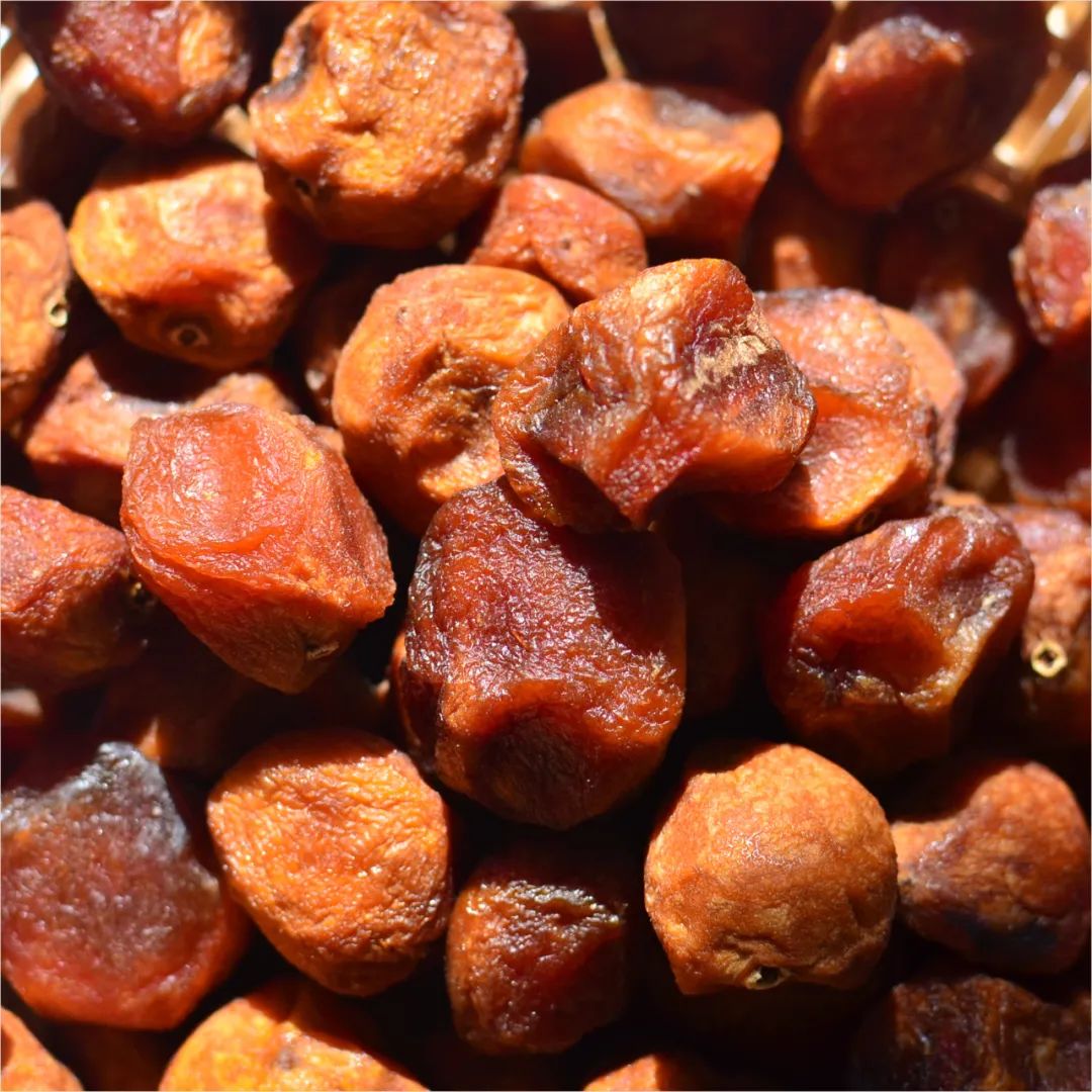 吊干杏风干过程中,随着糖分积累,表皮会开始泛棕、泛黑。微微发黑的色泽,正是糖化程度高的标志,也是风味更迷人的代表。