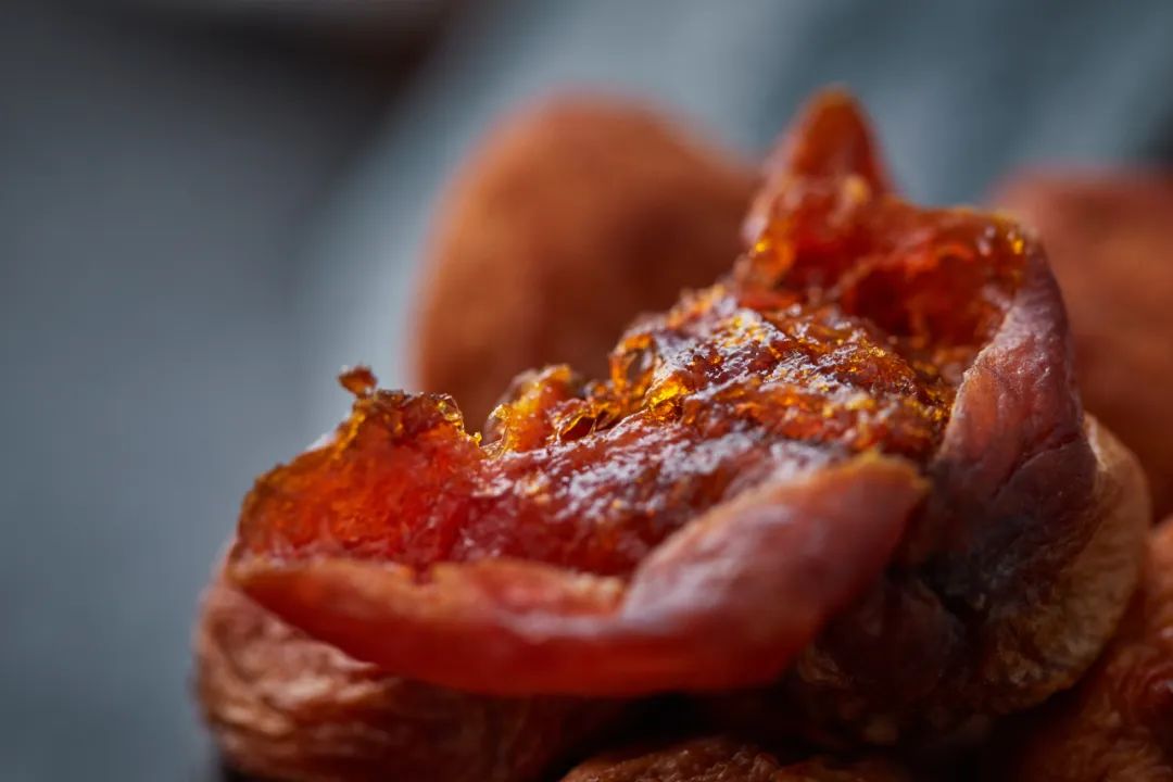 鼻端轻嗅,杏香浑厚;果肉也从细腻化渣变成了厚实耐嚼,有如蜜糖般粘稠,呈现出“胶质”感,Q弹软糯而富有嚼劲,黏黏糯糯,就像是一颗杏子软糖,
