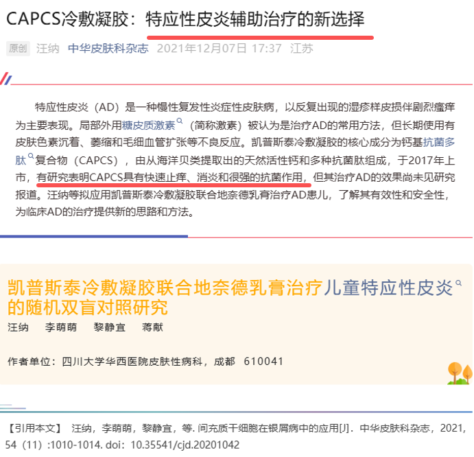 而且凯普斯泰参与了多个医院临床试验,均认为其是缓解皮炎的安全、有效成分。