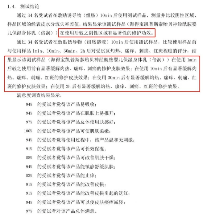 关于屏障修护、保湿方面的效果,海得宝也都有做临床测试: