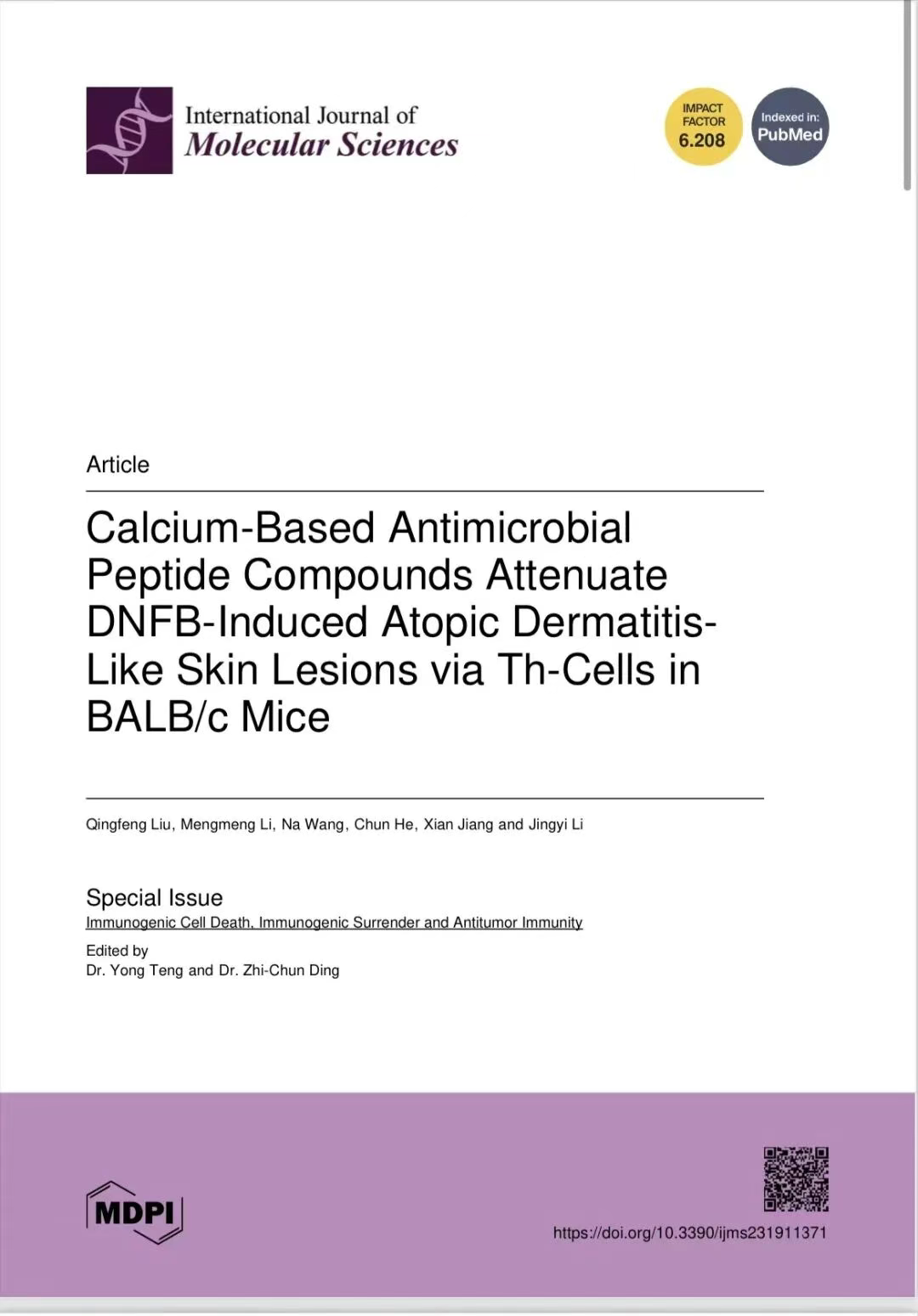 还被国际顶级SCI杂志《International Journal of Molecular Science》收录了!