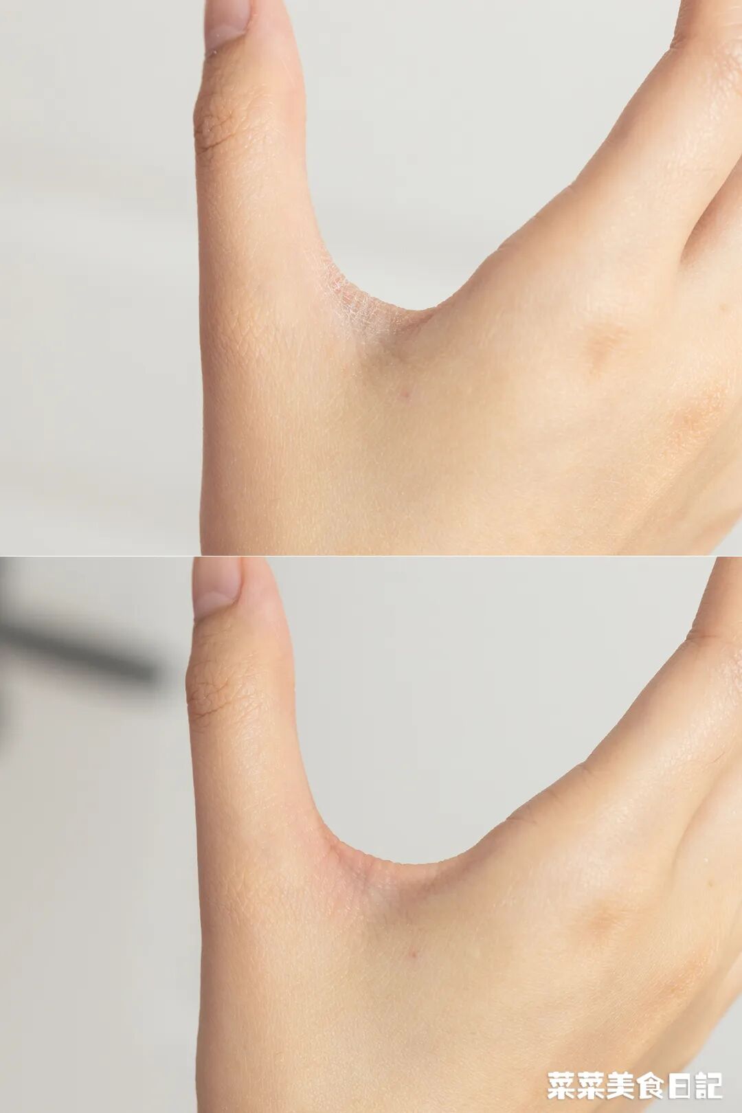 清爽版是水润的乳霜,倍润版相对厚一些,但推几下也都融入皮肤了。