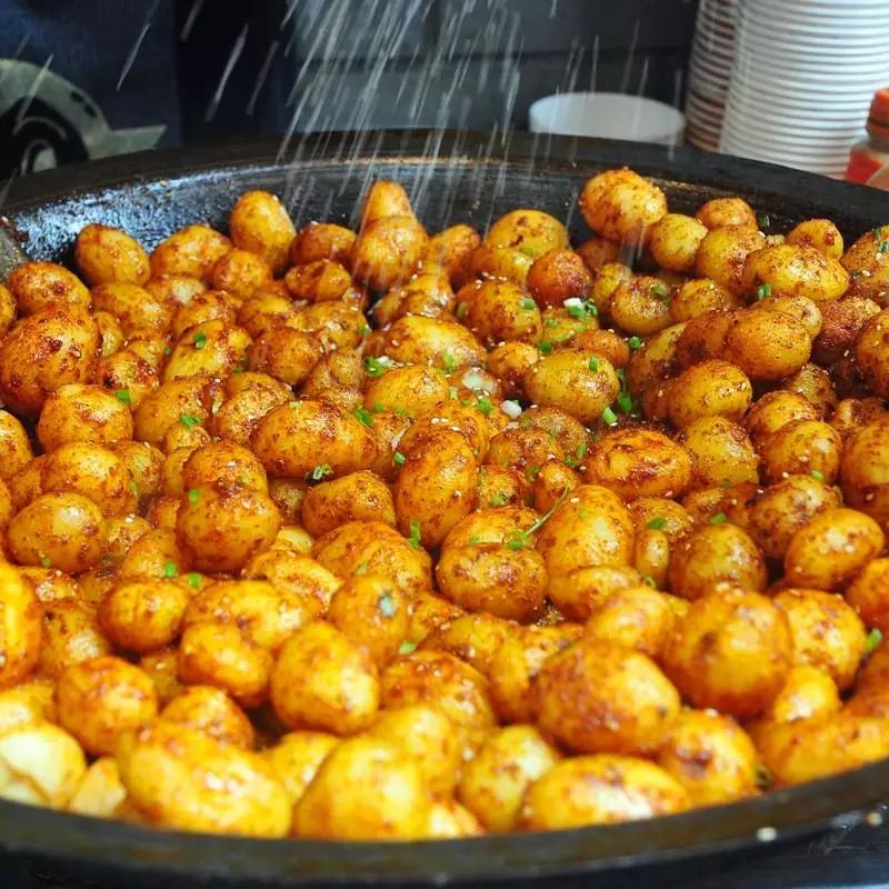 油炸小土豆非常讲究,要控制火候,慢慢炸,才能拥有外焦里粉的绝佳口感!