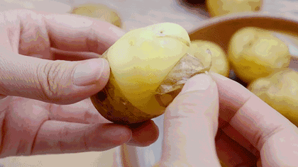烤的话直至表皮枯焦剥离,内里滚烫绵滑的溏心,这样的洋芋美味程度简直不亚于烤红薯,反倒更香更脆!