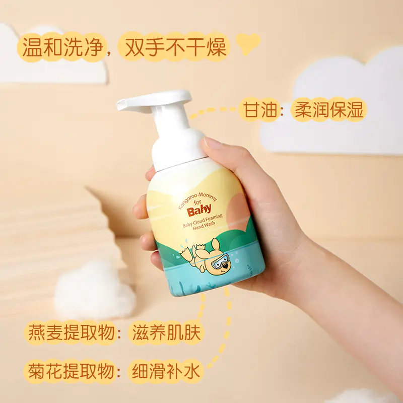 专属袋鼠设计👶童趣又可爱✅儿童人体工学泵头设计,好按压好接泡。圆形瓶身设计,适合手握不打滑👌