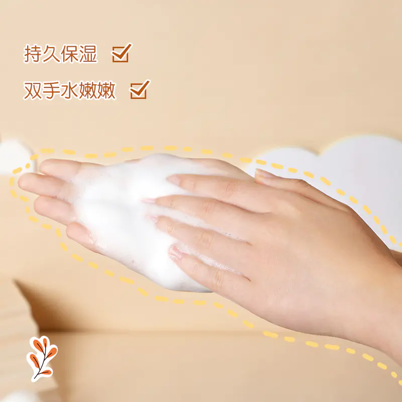 泡泡丰富有弹性,肌肤亲和力满分💯易冲洗无残留💦洗后双手有淡淡的蜜桃清香哦🍑