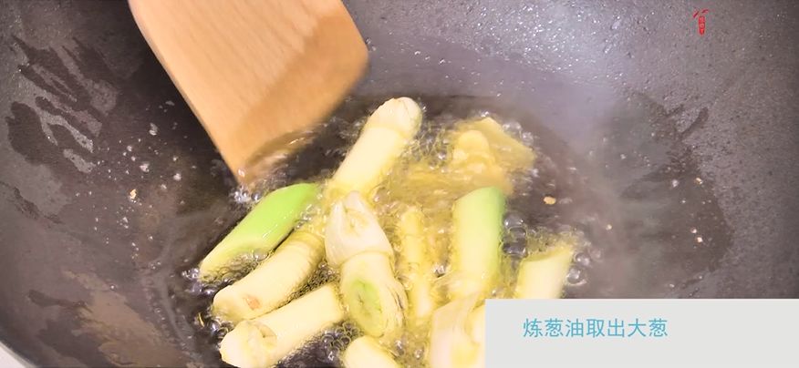 取出大葱,留油备用。