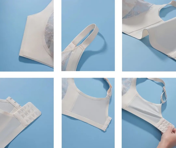 肩带到胸垫周围都采用了独特的点状胶粘合技术,下摆处也做了双层的加厚边条,避免内衣上滑或者是肩带掉落。