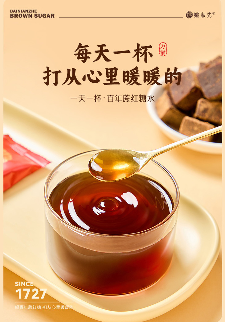 沿用百年传承的古法工艺,将百年蔗的糖分浓缩成琥珀色结晶。