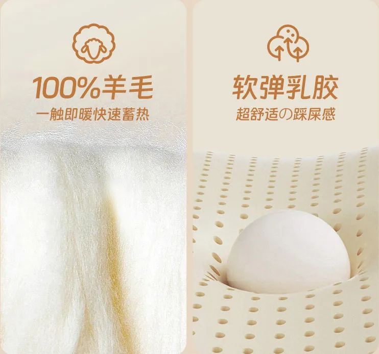 100%绵羊毛,舒适乳胶