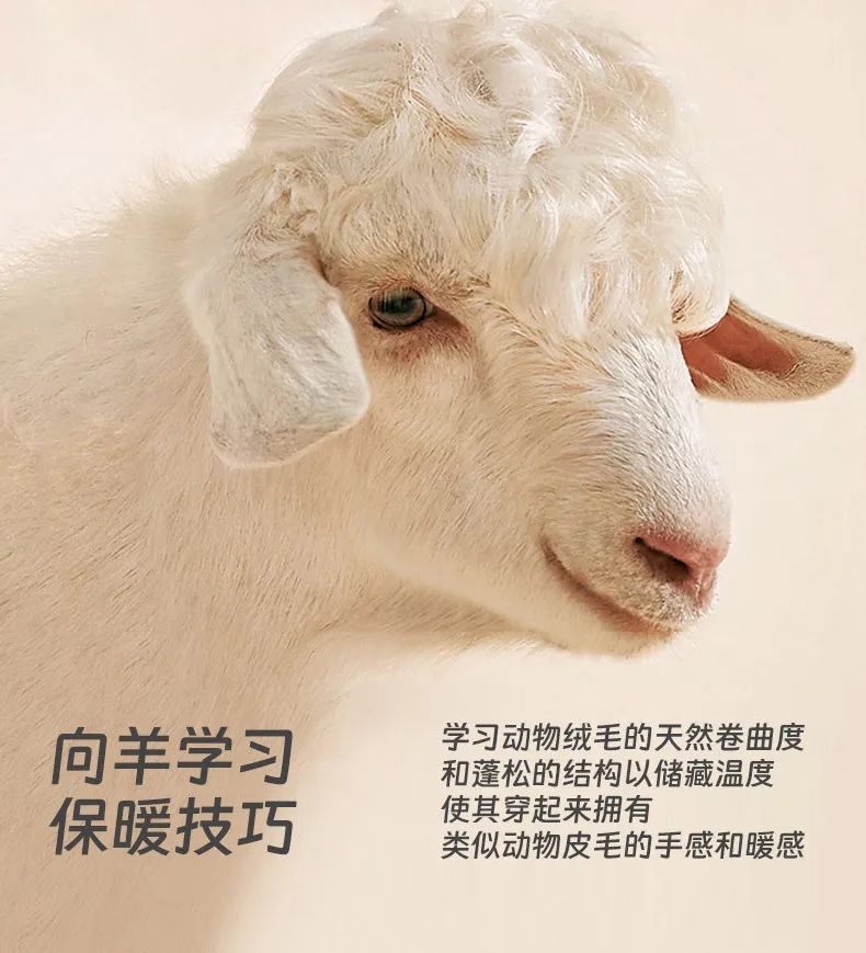 绵羊常年在风大酷寒的地方生长,羊毛纤维能固定住大量空气层,保温效果远超其它绒类。