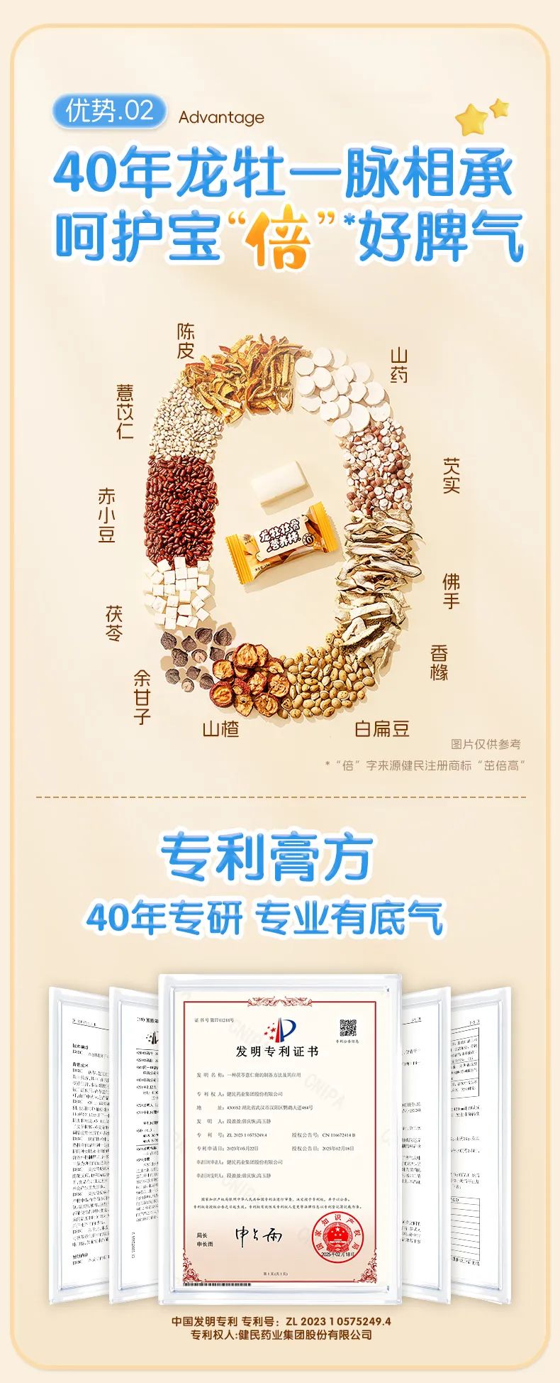 龙牡壮骨营养棒内含11味草本,通过40年龙牡壮骨颗粒组方进行药食同源的转化,国家级专利证实科学效果。一方面,加强蛋白质钙锌VD的营养摄入,另一方面通过脾胃调理,提升儿童吸收力!