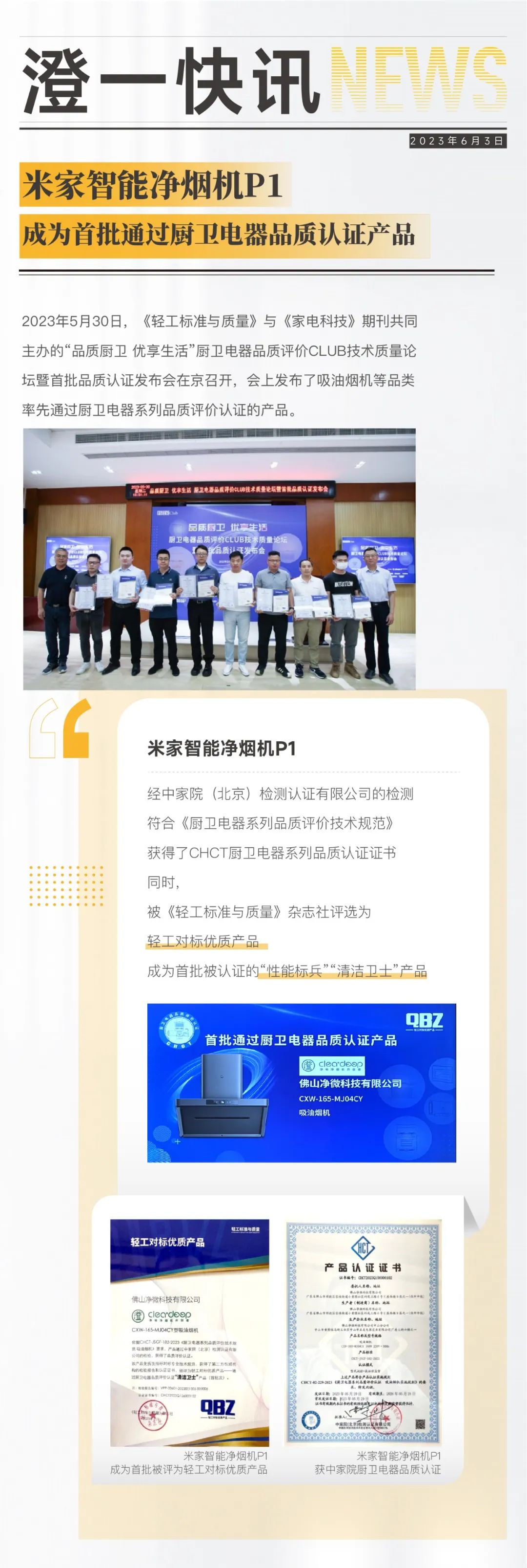 米家净烟机成为首批通过厨卫电器品质认证产品