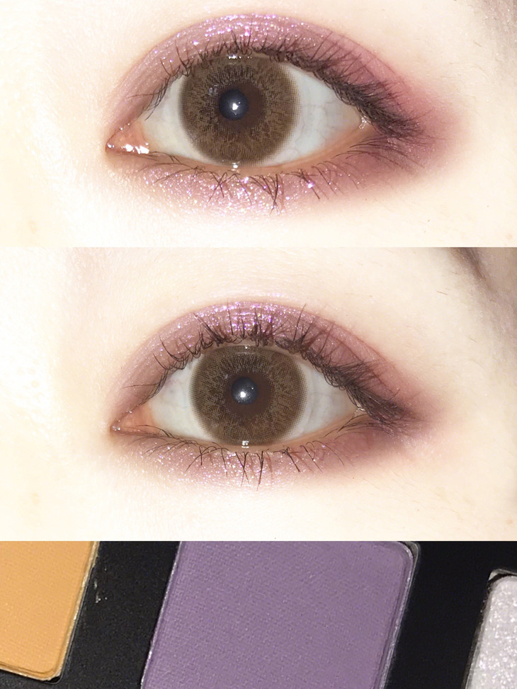 6.最后将浅紫色f和香芋紫f混合画出一条眼线即可