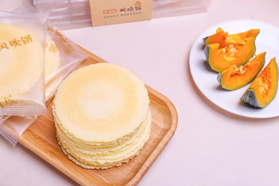 羊爸爸家刚上架不久一款南瓜味儿的风吹饼,吃起来和小时候记忆里的潮汕味道几乎没差。