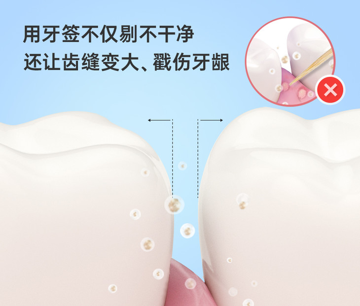 食物残渣塞在牙缝里,越失败越使劲,直到牙缝变大,依旧没剔出来。牙签尖锐还容易戳伤牙龈,大大增加细菌感染风险,引发口腔溃疡。