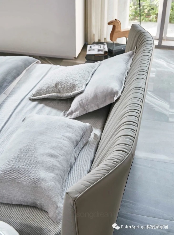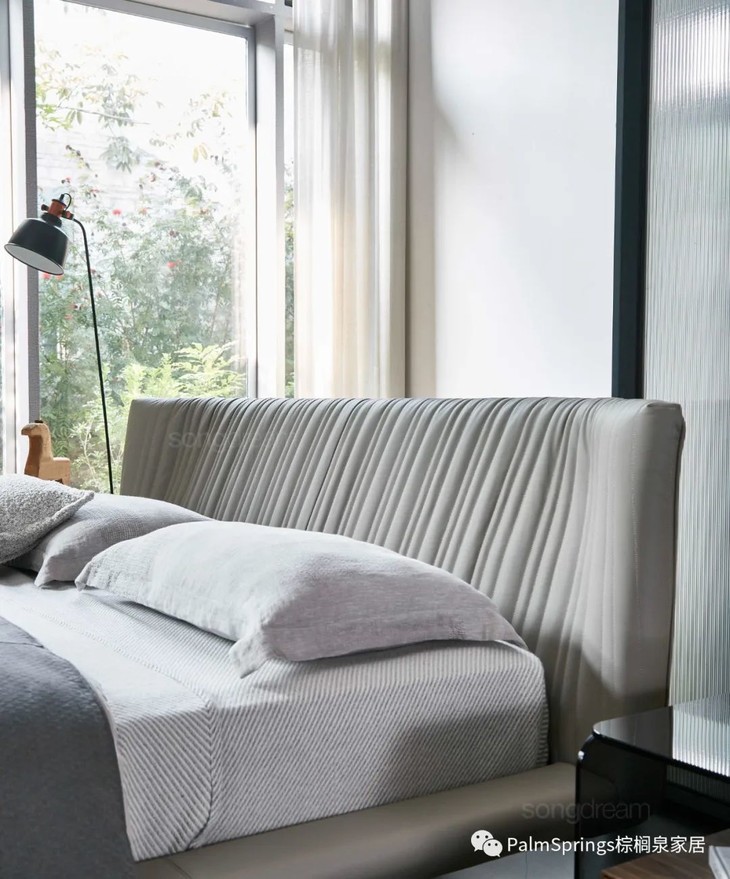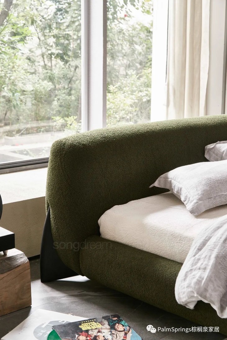 大白床奶油白色调和黑橡木色完美结合,简约流畅的造型带来视觉稳固安全感。面料精选皮质,触感细腻柔软,靠包内部填充高密度回弹海绵,柔软度适中,提供饱满Q弹的靠感。森绿色羊羔绒款同样有着柔软治愈感,百搭舒适的大白床不管是意式极简,北欧,侘寂风都常适合。