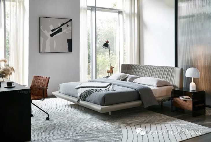 超有设计感的软弹悬浮床,经典的悬浮款式高级感满满,内收床脚设计,稳固支撑稳稳安全感,让空间有着梦幻的漂浮感,同时方便日常清洁。饱满的皮质方形床头靠包,细腻亲肤好打理,靠上去舒适包裹感随即而来,可选不同色彩面料,打造一个专属于自己的治愈卧室氛围。