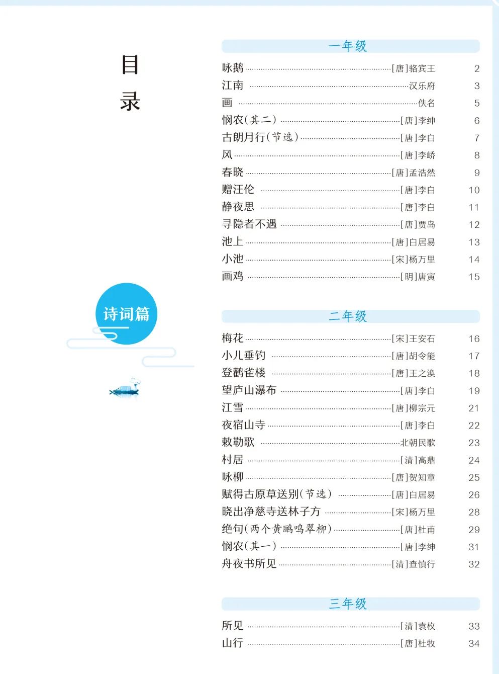 其中小学古诗文达131篇(必背127篇),比原人教版增加74%,初中古诗词增加51%。