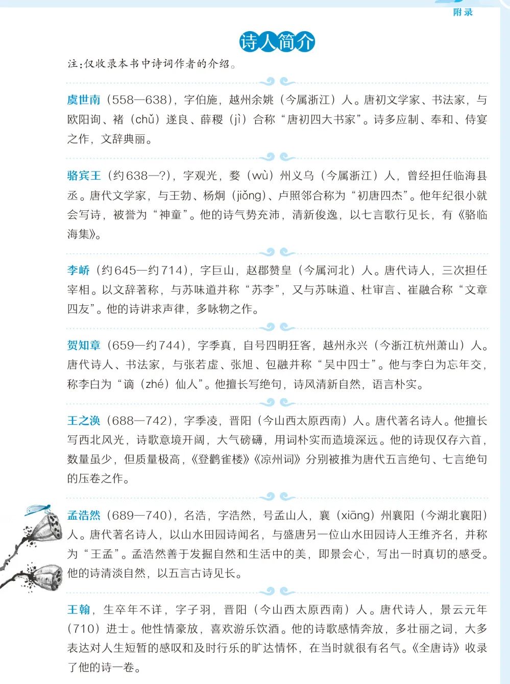 文学文化常识、古诗词索引、诗人介绍,方便拓展阅读