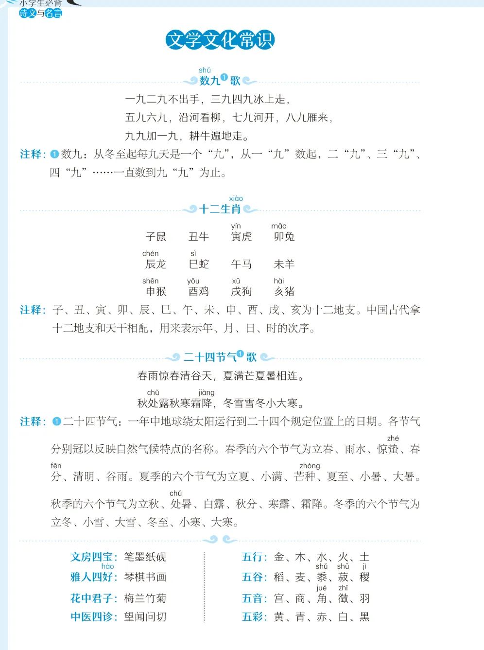 该书在附录中,列出了小学生须掌握的一些文学文化常识。