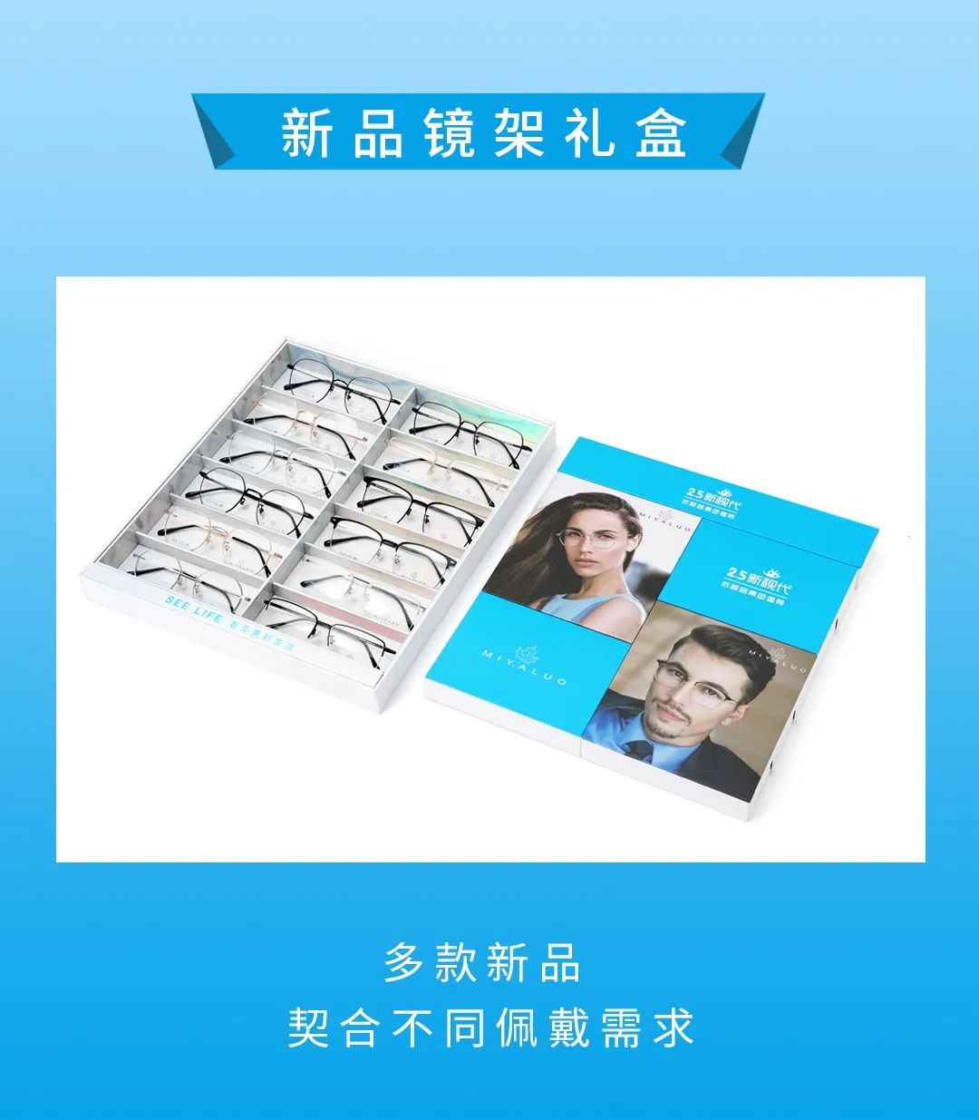 眼镜店柜台颜色各异,陈列区域大小不一,2.5新视代考虑到眼镜店实际陈列难点,特设计出可随意组合的镜架陈列礼盒..