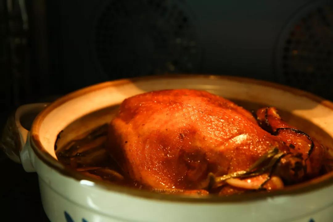 美食达人@Flora的小生活 做的这道茶香鸡,选择了先蒸后烤制的方式来制作,蒸的过程可以让肉质熟透而不失水分,保持鲜嫩的口感,后期烤制可以让汤汁更浓厚鲜香,浓缩后的茶香和鸡肉的香气都更丰富一些。