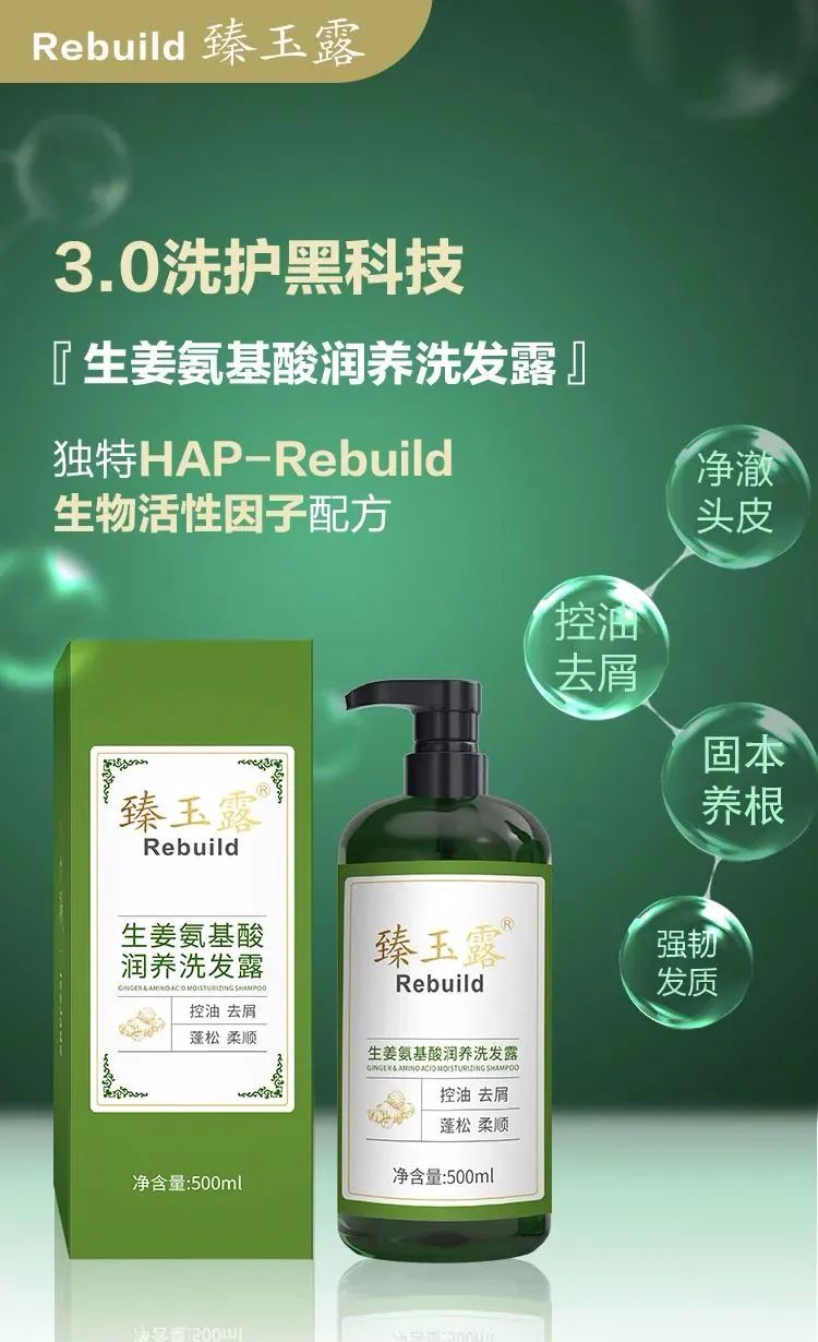 为了解决头皮头发清洁护理的难题,北大博士科研团队,基于再生医学原理,历经多年攻关成功研发出HAP-Rebuild生物活性因子,并与高比例生姜、当归、三七等自然植萃精华有机融合,研发出臻玉露Rebuild生姜氨基酸润养洗发露,能真正深度清洁、润养修护头皮、毛囊和头发!