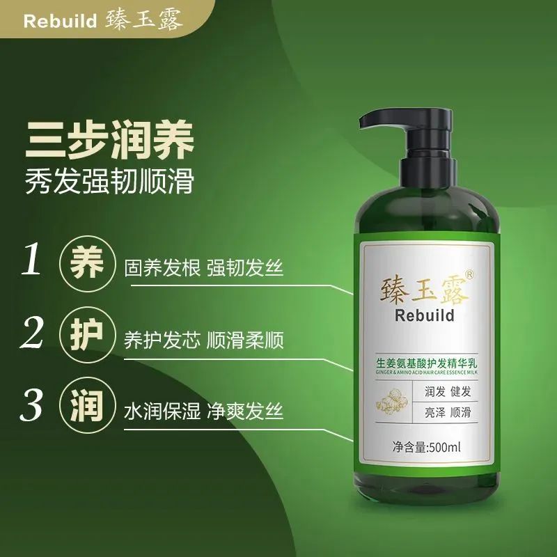 臻玉露护Rebuild生姜氨基酸护发精华乳,蕴含原生姜汁、何首乌、当归、三七等植萃精华,特别添加12种氨基酸、玻尿酸钠和透明质酸钠,给予秀发营养呵护,能有效改善干枯毛躁分叉发质,柔韧秀发,润泽发丝,使秀发持久水润、丝般顺滑。