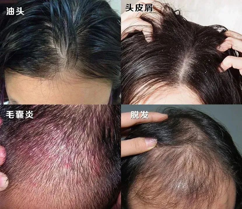头皮生态环境被破坏了,头发就很容易出现脱发、白发、油腻、细软、头屑、头痒、毛躁、分叉等症状。