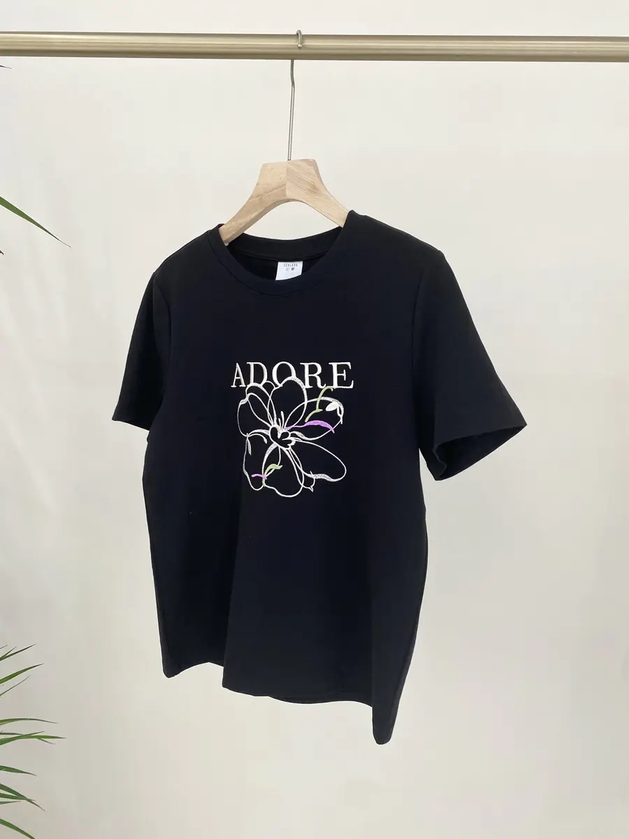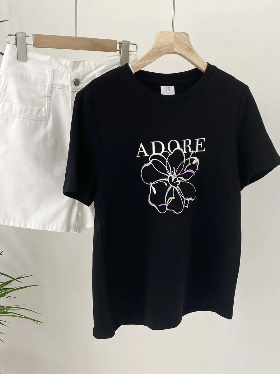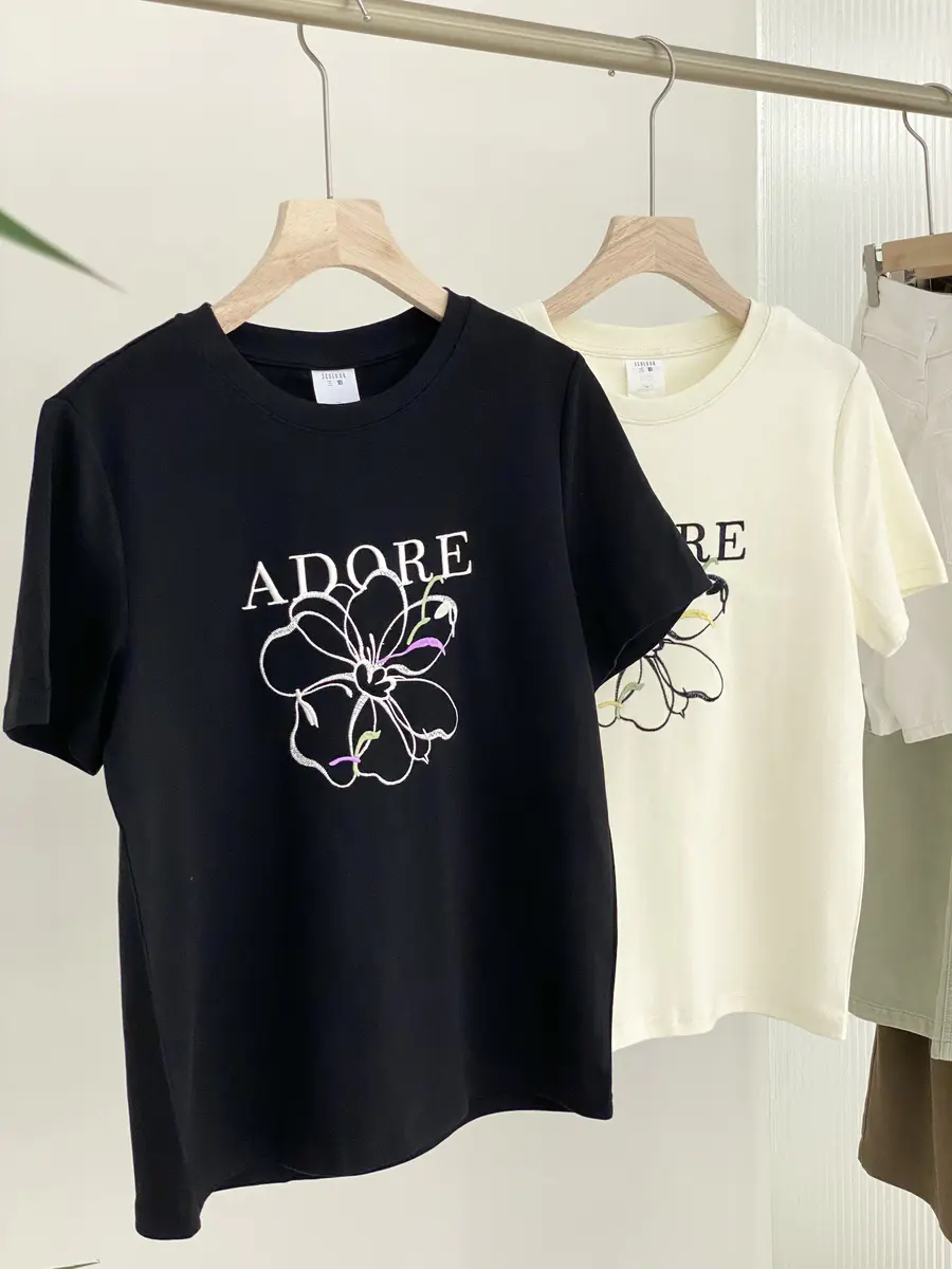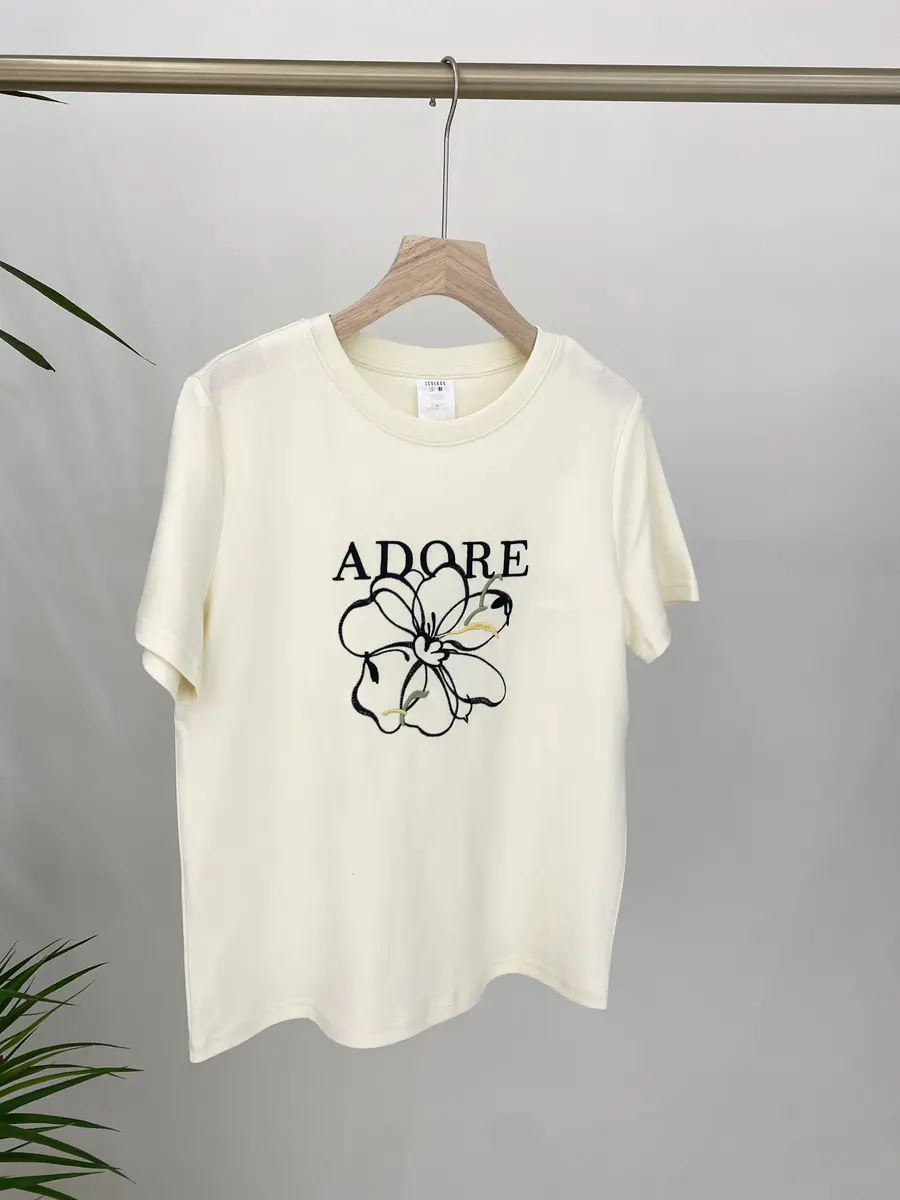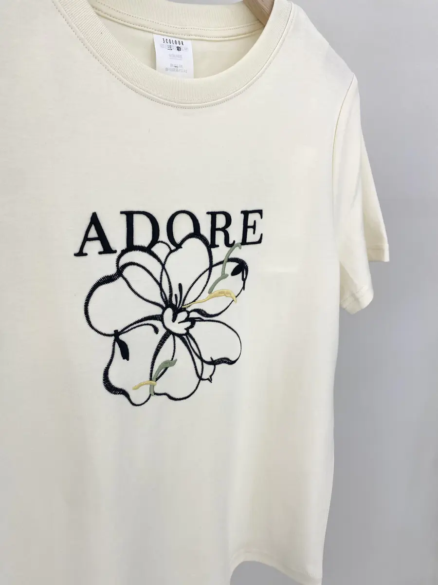 这款T恤相较一般的印花T不同,不仅是工艺上更加精致,而是相较一般印花的可爱、休闲,花朵绣花反而增加了些许精致和女人味
