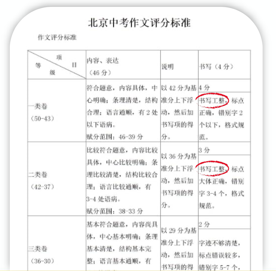 看一下北京中考作文的评分标准,字写的好坏,直接能差出4分。