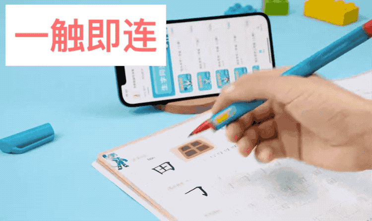 洪恩练字笔,只要笔尖轻触练习册,就能连上app,立马开练。