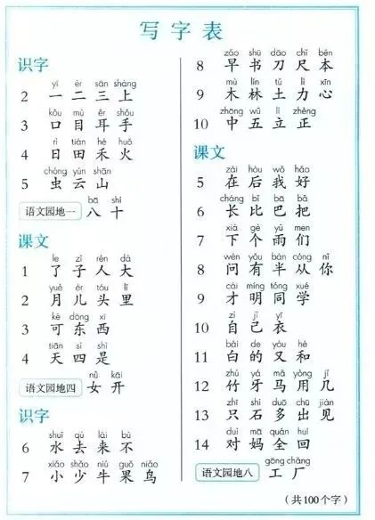 看一下小学一年级上册的写字表,先学“一、二、三”还很基础,接着直接跳到“目、手”这种结构更复杂的汉字。之后“了、土”明显又简单很多。