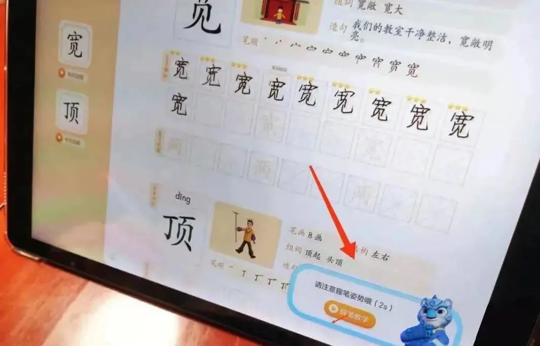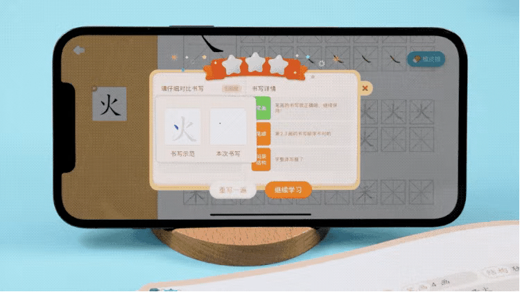 比如笔顺错误、倒下比、笔画错误、笔画过长过短,间架结构往哪里偏了,甚至写字的速度过快、写字太用力,都能实时给出反馈,提醒孩子。