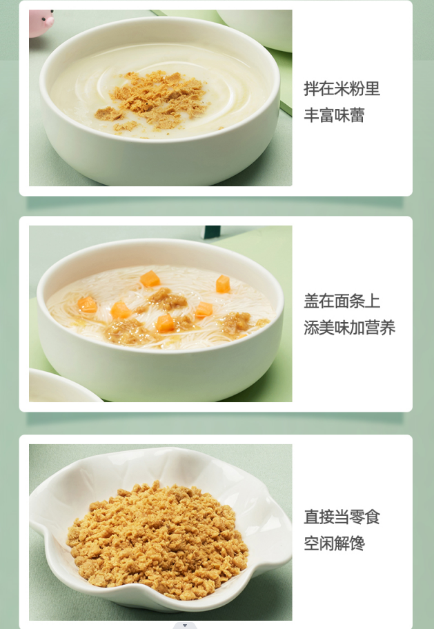 简单省事儿的肉酥,轻松搞定宝宝三餐,这样的“辅食好帮手“怎能不爱呢?一起探索肉酥的花式搭配吧~