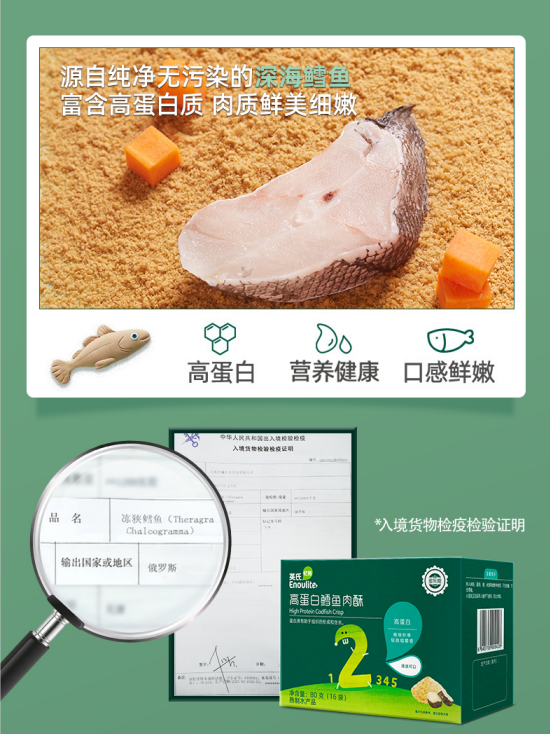 首先是因为给宝宝吃的,一定要少添加剂,英氏的这几款肉酥配料表简单明了,猪肉、牛肉和鳕鱼肉,成分一目了然。