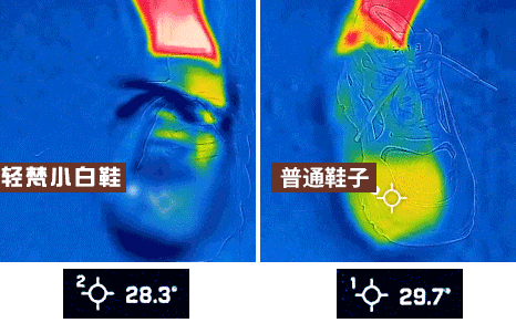 10分钟后小白鞋,温度明显比另一只低了3-5度!