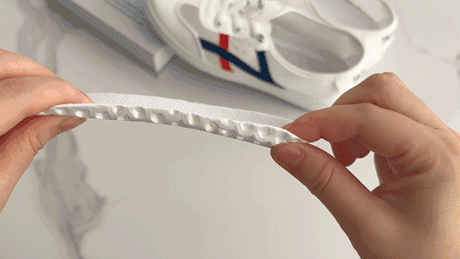 根据足部工学做了凹凸设计,更贴合脚掌,让整个脚掌受力更均匀,所以穿起来非常轻盈贴合脚底,常常要走动的姐妹们选它准没错。
