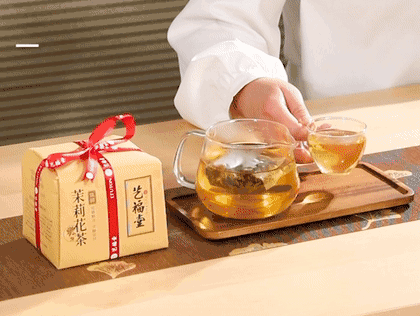 冲泡饮用时,茶汤清澈透亮,花香鲜活,内蕴茶香,浓浓的茶香渗入茉莉花香气息,轻饮一口,让人回味无穷。茶香与花香融合,香味缭绕间,喝到嘴里的是如冰糖般清甜的滋味!