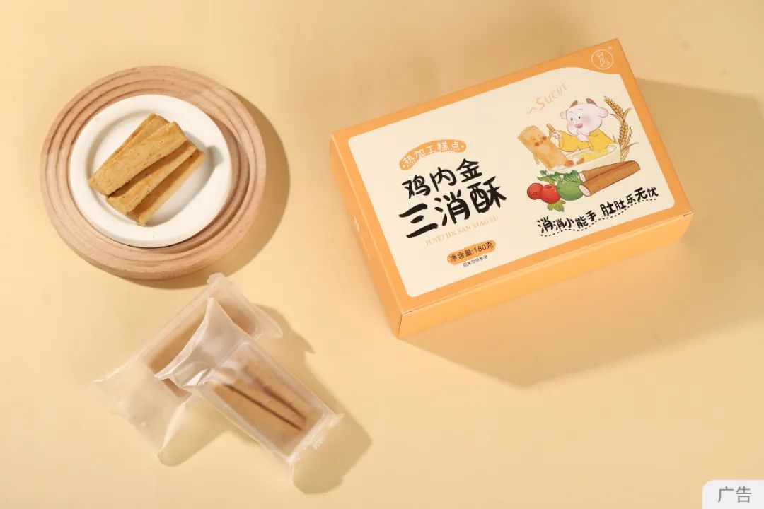 新上架的这款鸡内金三消酥一大盒,里面有10小袋,一小袋有3根,方便携带。平时接娃放学的时候,拿上一袋,给学了一 天知识的孩子补充一点小能量(2岁以上的宝宝就可以吃了)。尤其是像小米一样的馋嘴宝宝,吵着吃零食,就可以选择这种健康的小零食,能饱腹解馋的同时,还能让脾公子动力满满。