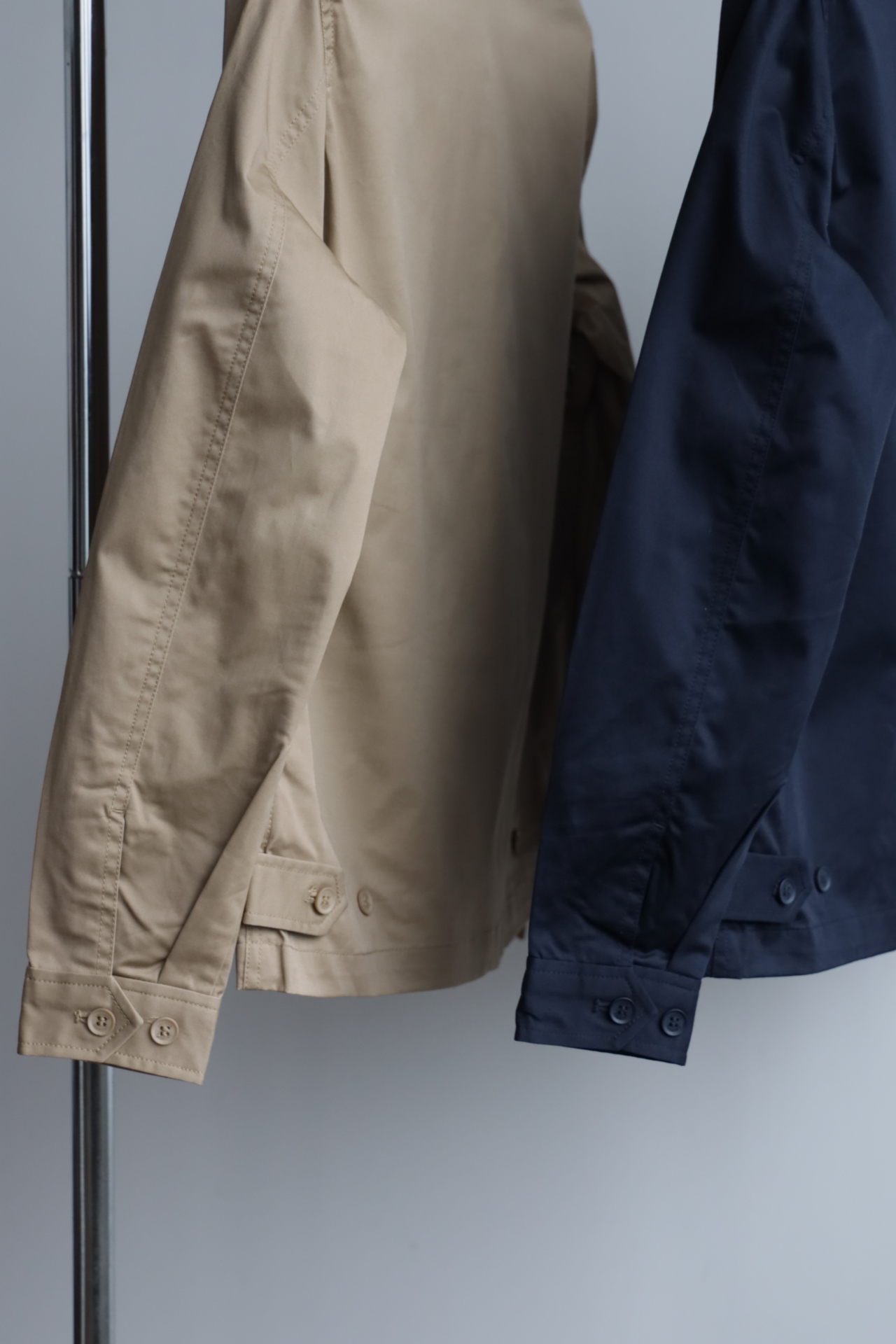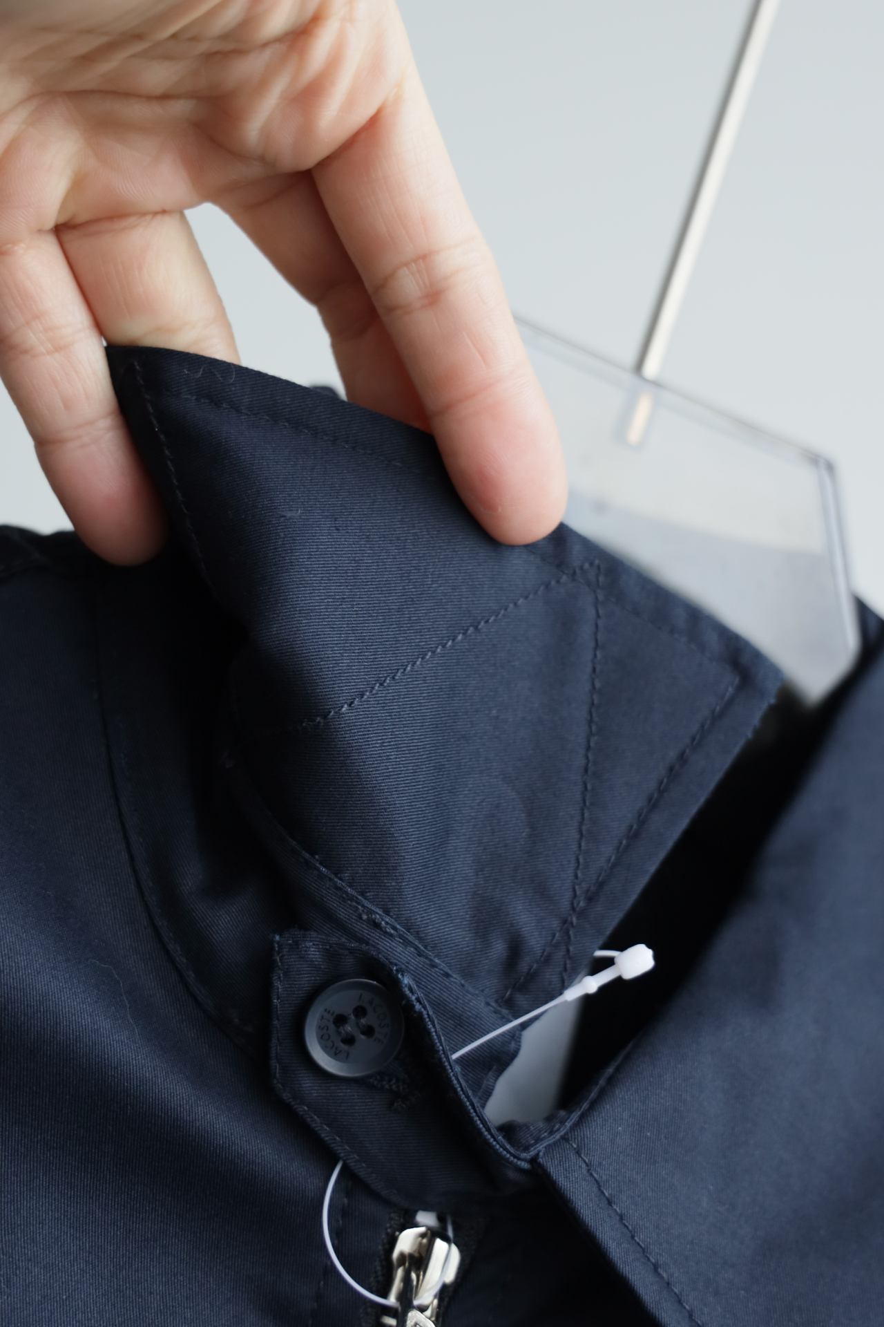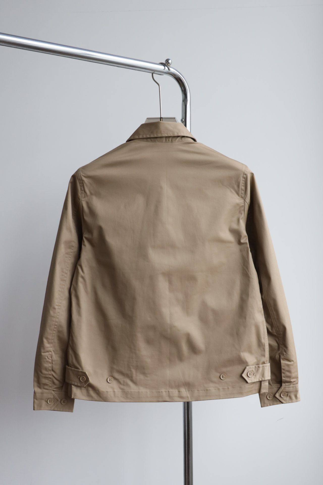 春秋薄款,双层里面有衬布,定织螺纹袖领,定制五金四合扣
