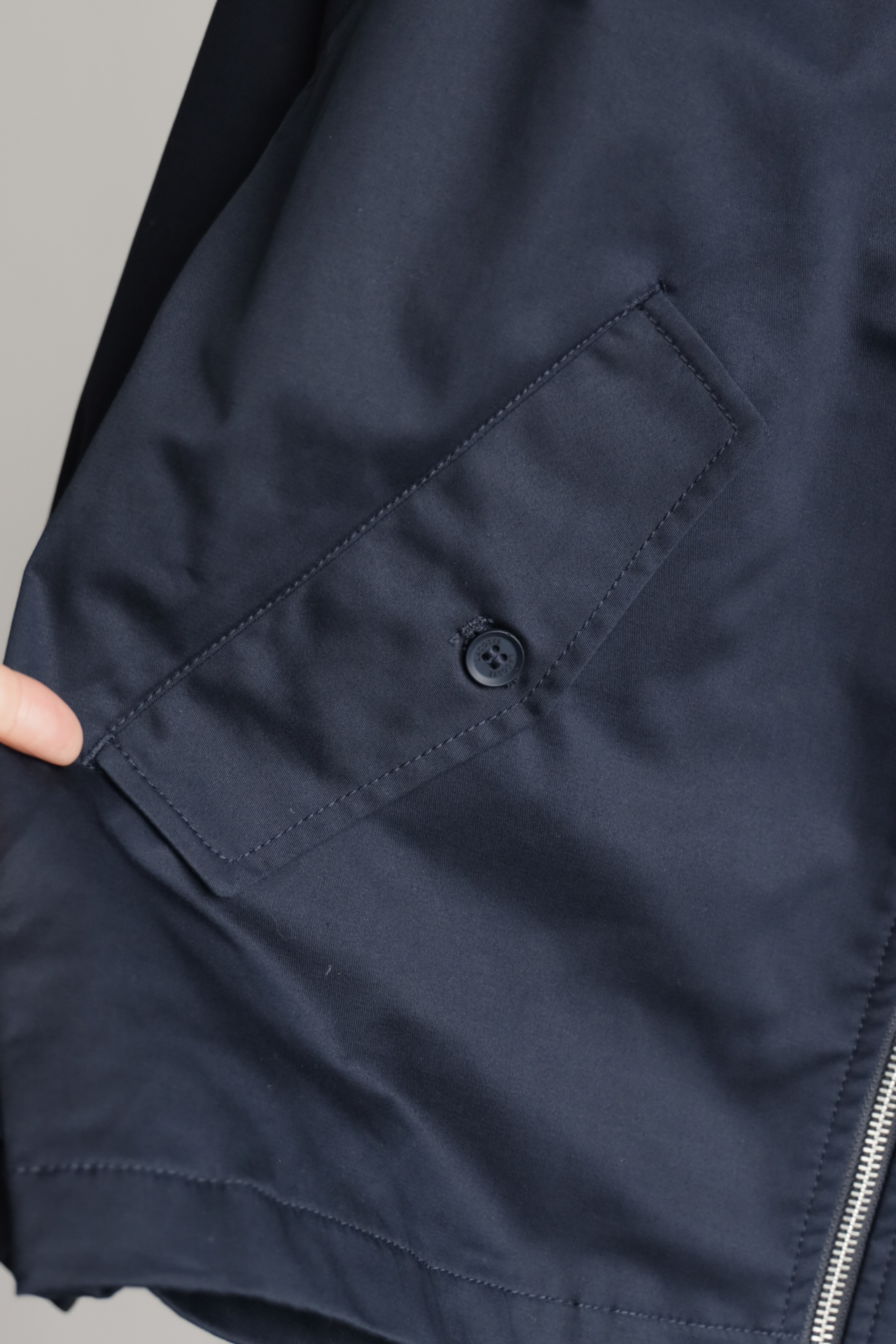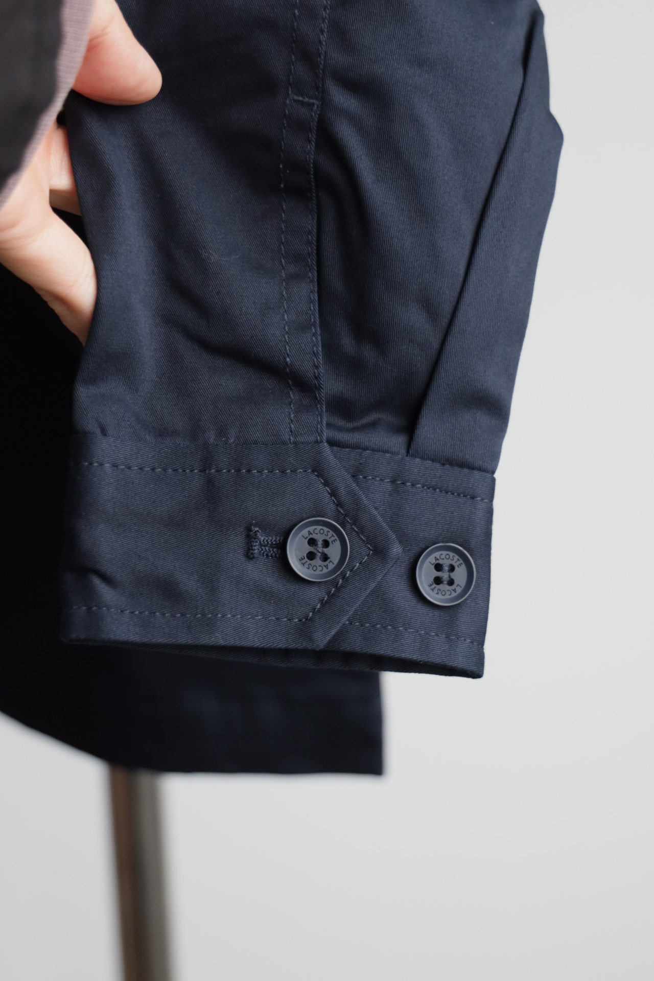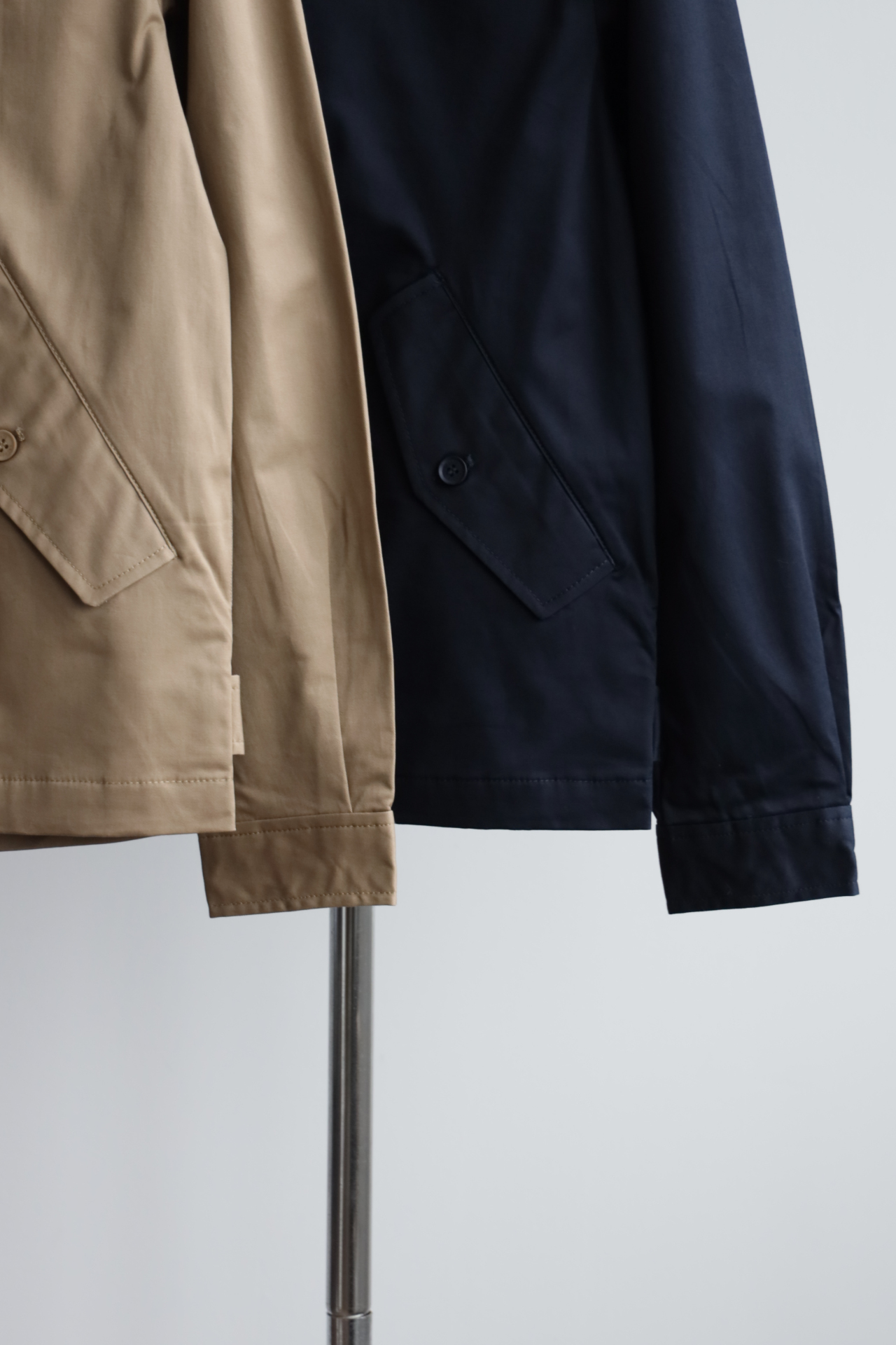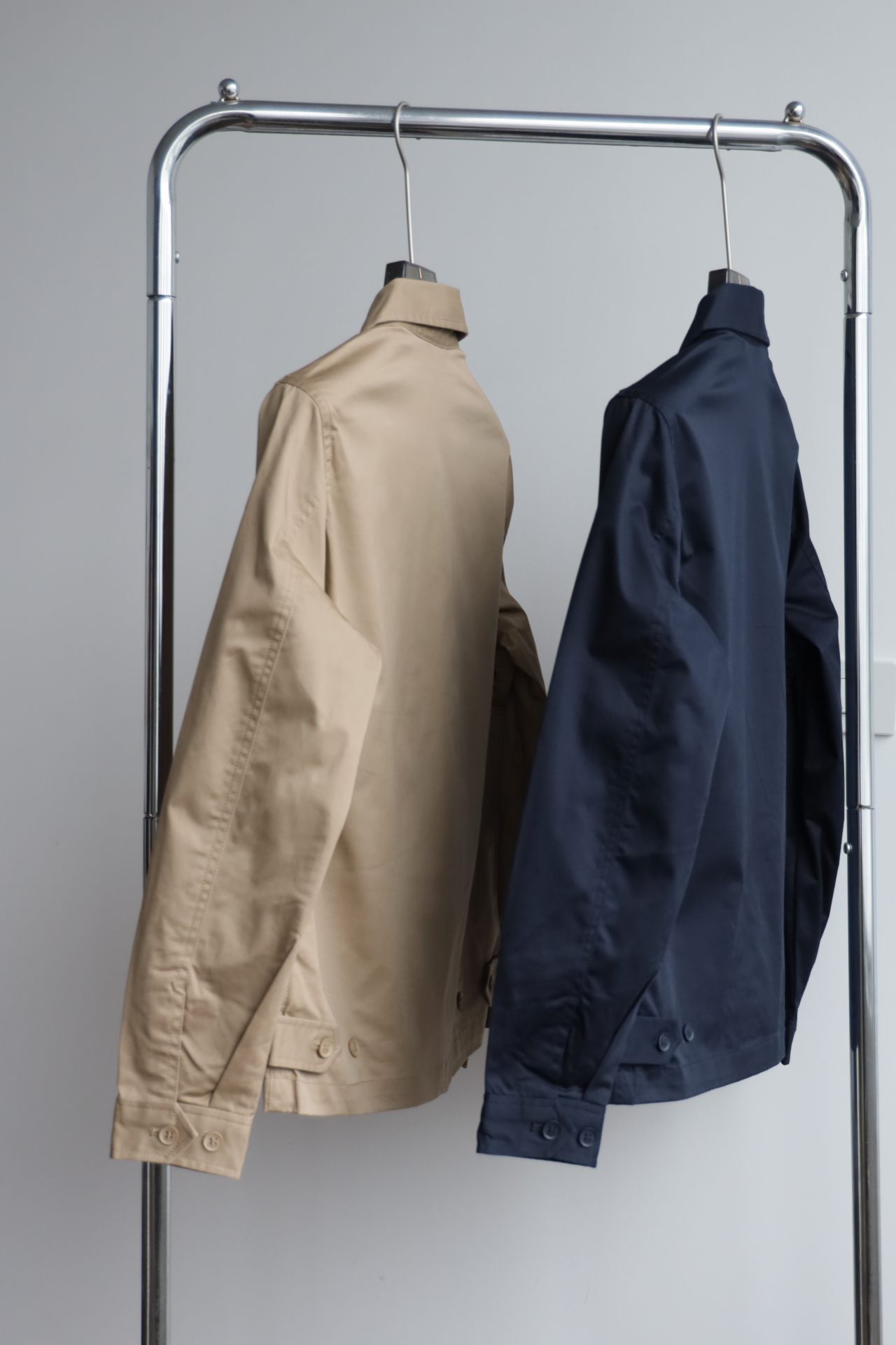 春秋薄款,双层里面有衬布,定织螺纹袖领,定制五金四合扣