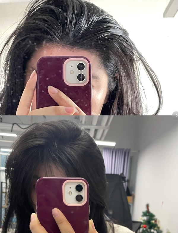 之前一天不洗就油得能炒菜的头,现在即使你多隔两天再洗,头皮依然蓬松,还没有臭臭的头油味。