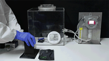 先往密封舱内注入甲醛,待甲醛含量达到60.8ppm后,迅速放入2包锰炭包。